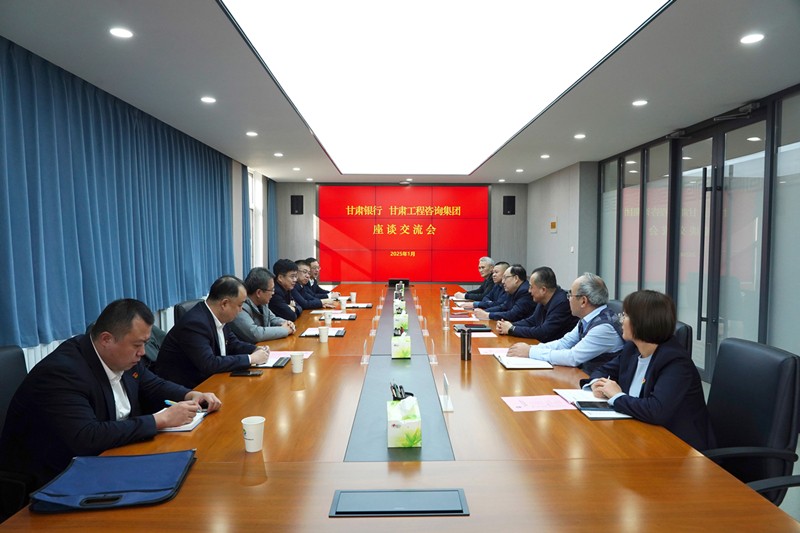 1月15日,甘肅工程咨詢集團黨委書記、董事長張佩峰與來訪的甘肅銀行黨委書記、董事長劉青就深化銀企合作座談交流。甘肅銀行領導王錫真、杜晶,甘肅工程咨詢集團領導成少平參加。