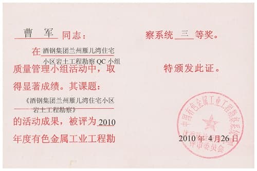 酒鋼集團蘭州雁兒灣住宅小區巖土工程勘察